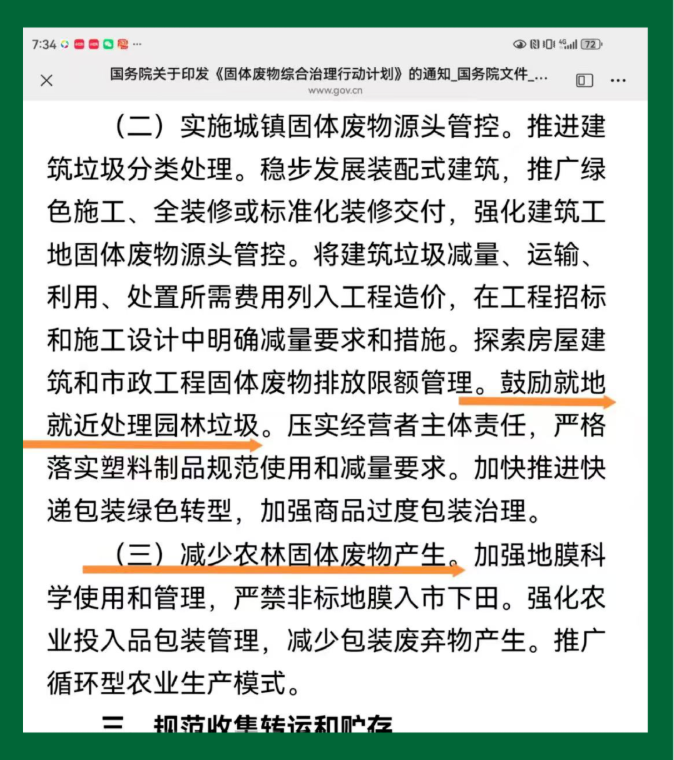 一、是用地保障政策。《行动计划》明确要求,各地要加强资源循环利用项目用地保障,安排不少于1%的产业用地用于支持资源循环利用设施建设,将生活垃圾分类收集、中转贮存等项目纳入公共基础设施用地保障范围。这一政策将有效解决农林废弃物收储点用地难题。